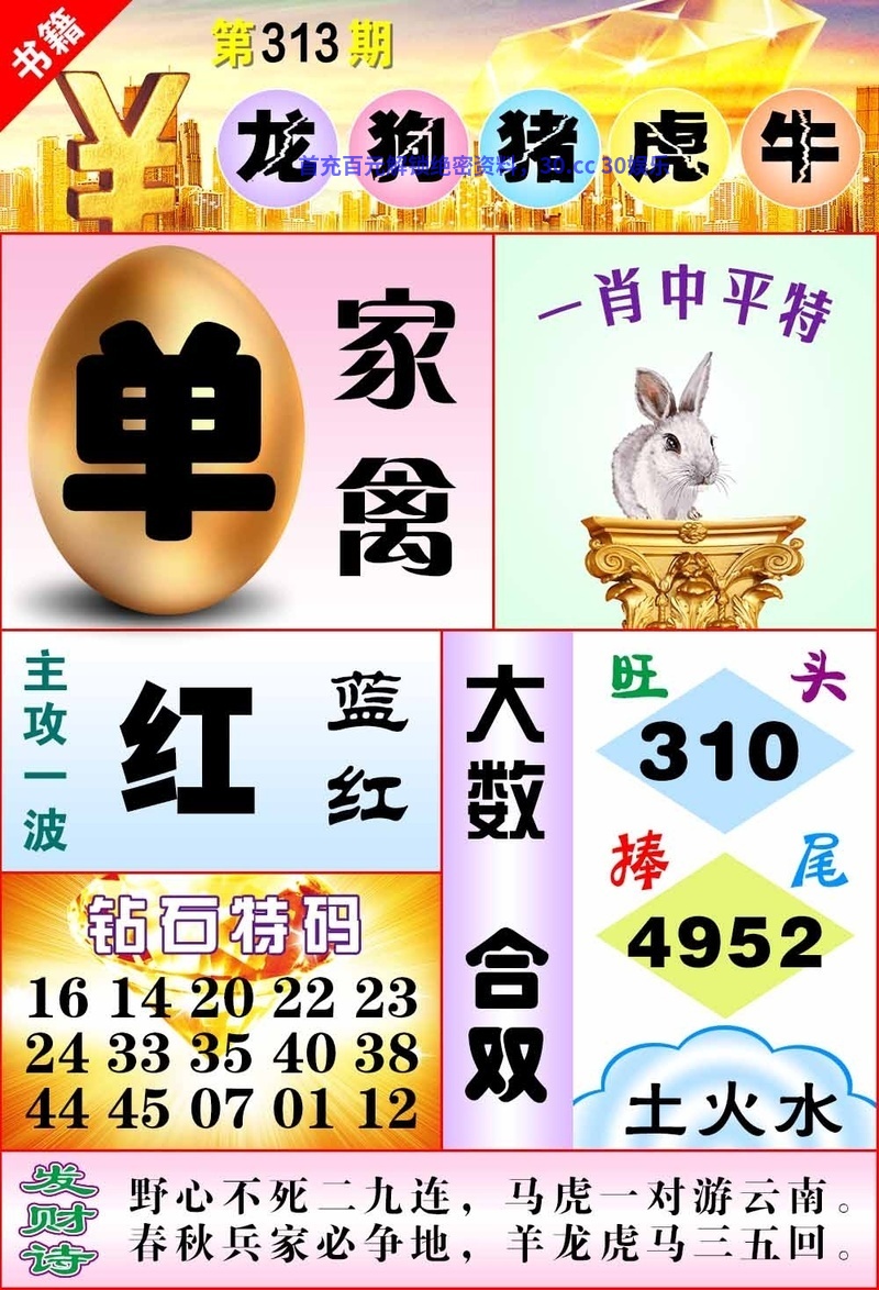 309期:八肖【龙狗虎猪蛇马羊】开:鼠06准
