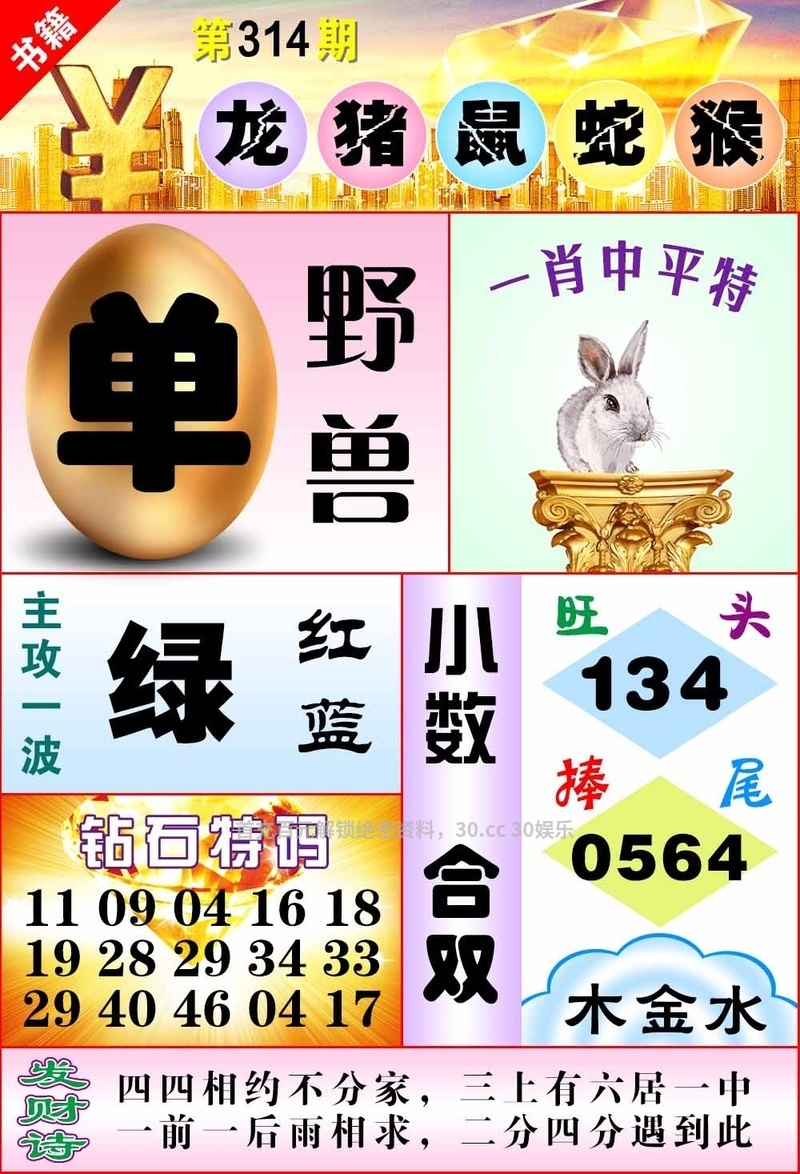 314期:八肖【牛猴马兔鼠狗虎】开:羊23准