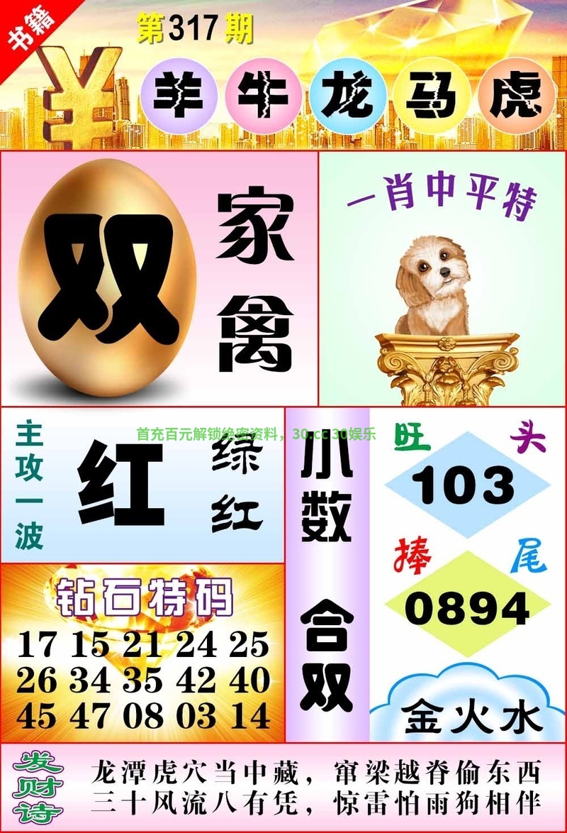 317期:八肖【牛兔猪蛇鸡猴羊开:鼠18准